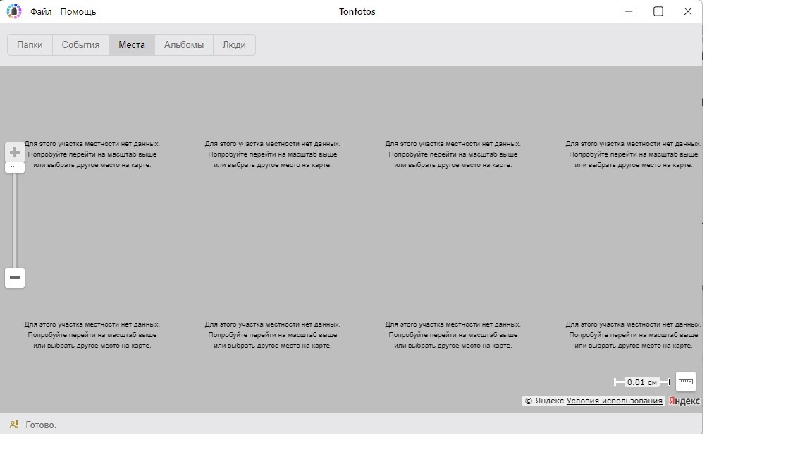 В программе в меню “Места” самопроизвольно установился масштаб карт от 0,01 см да 50 м, изменить масштаб на большей нет возможности, соответственно вся карта состоит из квадратиков с сообщением увеличьте масштаб