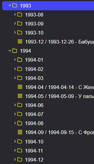 При открытие папки-года никакое содержимое вложенных папок-месяцев не должно выводиться на экран, пока я принудительно их не открою. И никаких папок через слэш быть не должно. Такое решение нарушает строгость построения древа папок.